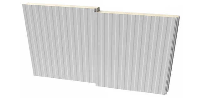 • Exterior insulated panels shall be clad on the weather-exposed side with 26 gauge (0.455 mm) pre-painted G90 galvanized steel or AZ-50 Galvalume (USDA accepted).